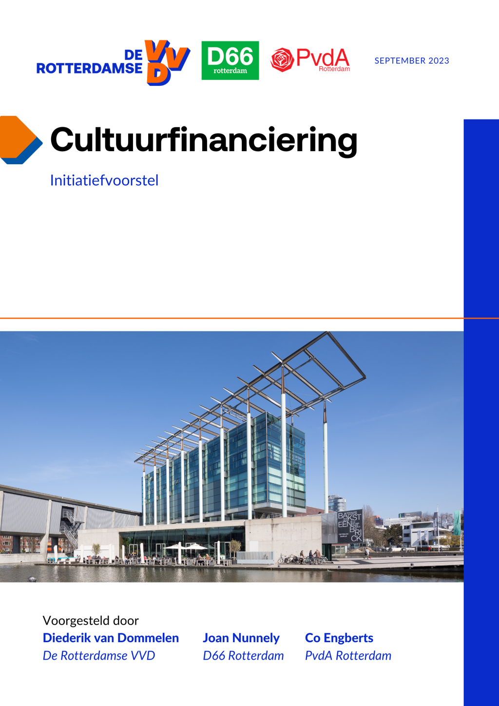 ROTTERDAM - De Rotterdamse VVD dient donderdag 28 september tijdens de gemeenteraadsvergadering in samenwerking met D66 en PvdA het plan Cultuurfinanciering in. Het plan Cultuurfinanciering zet in op een sterke, zelfstandige Rotterdamse cultuursector met een stevige plek in de verdeling van Rijkscultuurgelden.